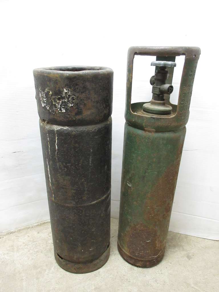 Since site based generation of acetylene gas for larger scale users was still the normal into 60's. This video shows you the sizes and markings of tan. Here is one safe way to purge the tank before cutting it: I just rolled two long expired oxy & two acetylene tanks out of my father's garage. Found this pot at an estate sale this past weekend.